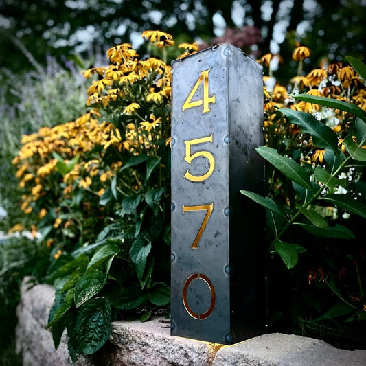 Home Address Solar Pillar Light - Steel