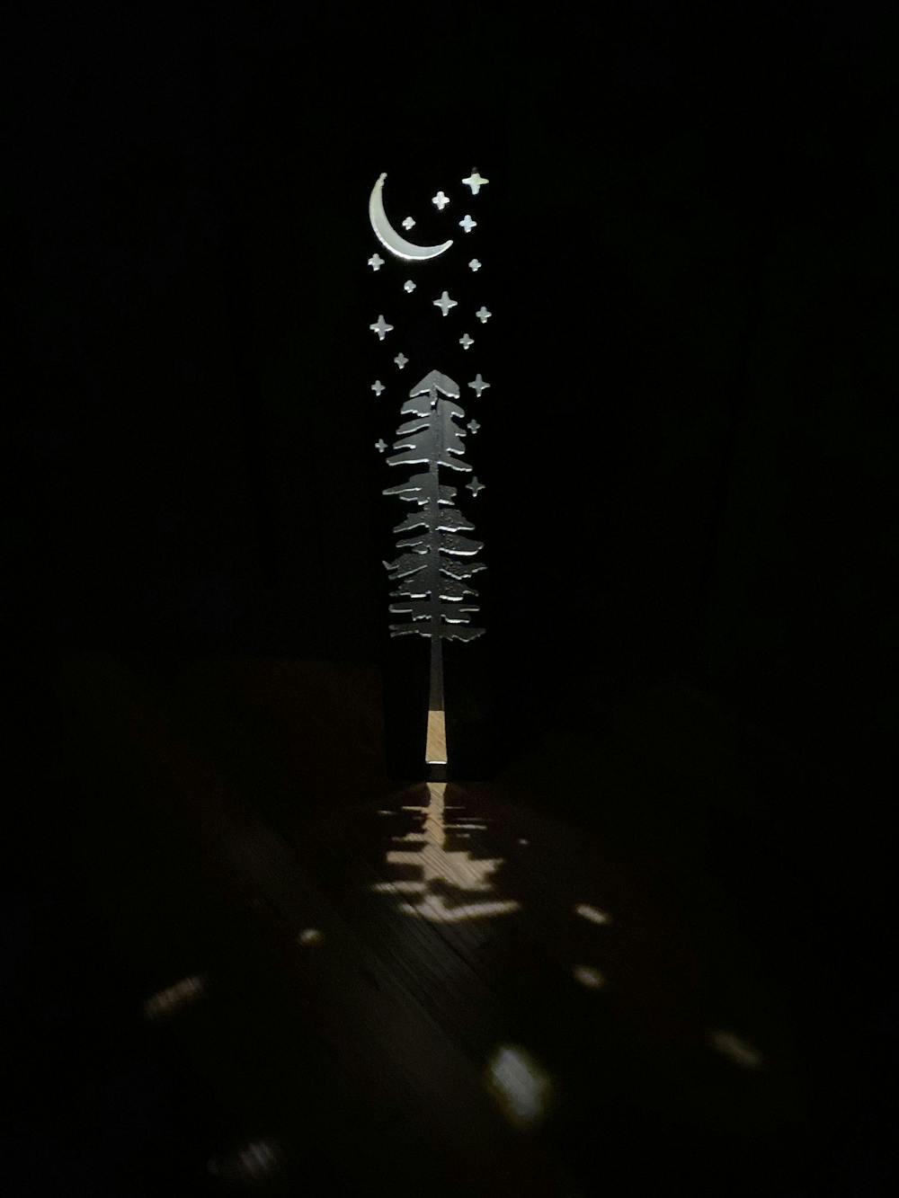 4-Sided Night Sky Pine Tree Solar Pillar - Steel