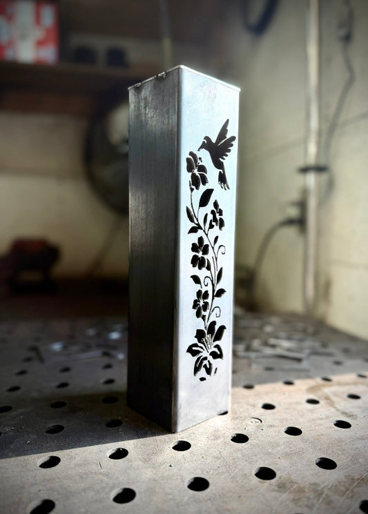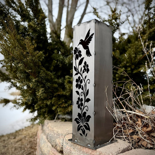 Hummingbird Garden Glow Solar Luminary Pillar - Steel